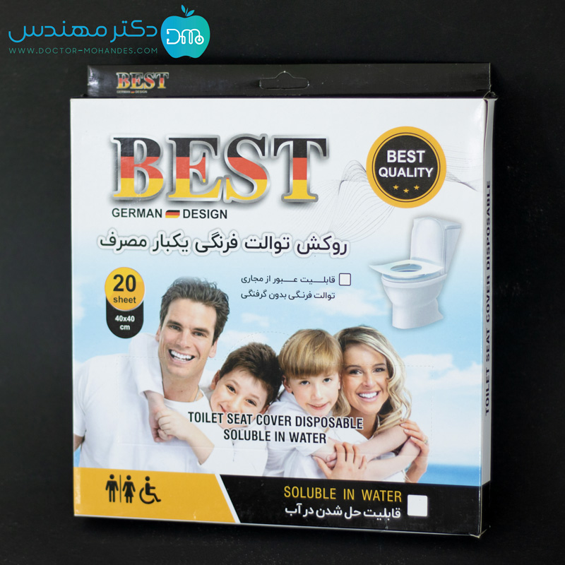 کاور توالت فرنگی یکبارمصرف Best با طراحی کاربردی، بستهبندی مناسب و کیفیت بالا، همراهی ایدهآل برای سفرها، محل کار، مراکز درمانی، هتلها و هر موقعیت خارج از خانه خواهد بود.