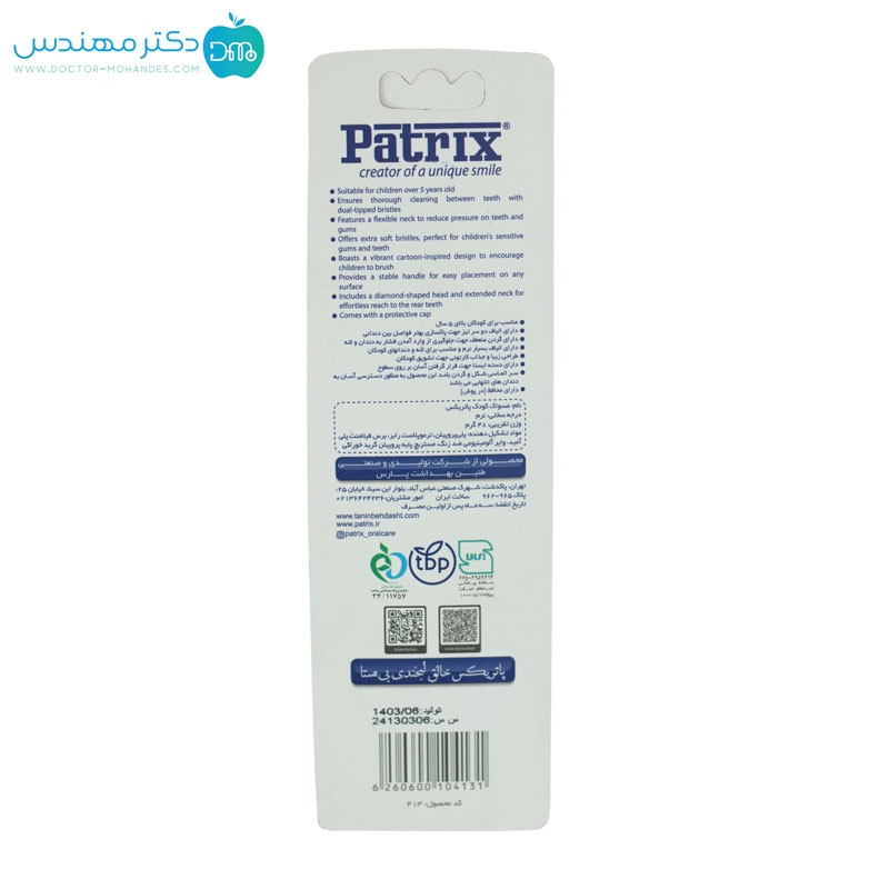 چون مسواک زدن برای بچهها باید تبدیل به یک عادت شیرین و روزانه شود. مسواک کودک پاتریکس با ظاهر جذاب و الیاف نرم، بچهها را به مسواک زدن علاقهمند میکند و خیال والدین را از بابت سلامت دندانهای کوچکشان راحت میسازد.